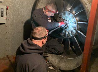Older OEM equipment can carry long lead times on replacement materials and become a large headache when repairs are needed. UE was called in to rebuild a large Trane air handler over 50 years old that was a critical piece of ventilation equipment for a manufacturing plant. Our technicians set up an onsite press and removed a 3 15/16" solid overhung blower shaft, old sleeve pillow block bearings, 100HP motor, pulleys & belts. We were able to machine a new shaft and source proper replacement pillow block bearings converting to grease-lubricated bearings to eliminate weeks of downtime. Our technicians installed all new equipment including a new 100HP inverter duty motor on site and had onsite balancing done to complete the work. The complete downtime on the fan was limited to under 48 hours.